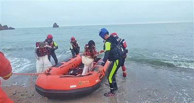 接警后,国家水域救援青岛大队立即启动应急预案,迅速赶往事发点位。救援人员到达现场后发现,两名被困游客所在的礁石已被海水围住。海浪拍打着礁石,溅起层层浪花;水下礁石密布,暗流涌动,救援难度极大。