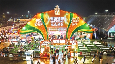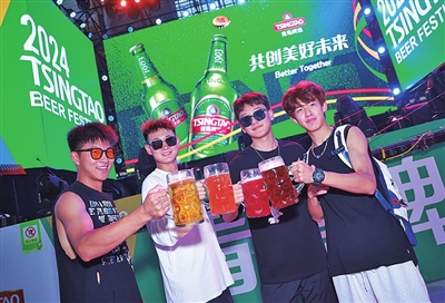 游客在青岛啤酒纯生大篷不仅能喝到新鲜直供、全程冷链的青岛啤酒家族产品,还可以畅享原浆、纯生、白啤、黑啤、IPA等鲜啤,品味一世传奇、奥古特A6、琥珀拉格、情义英雄、太白醉酒等经典佳酿,以及草莓西柚、三重柠檬、比利时双料、小麦博克、藤椒赛松、小麦格拉等广受欢迎的精酿。