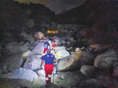 早报7月3日讯 7月2日晚,两名来青游客在崂山登山途中迷路被困。天黑路险,二人处境危急。青岛红十字搜救队接到警情后,迅速响应,展开一场与时间赛跑的救援行动。队员兵分两路,携带专业装备,克服重重困难,经过7个多小时紧张搜寻,终于在7月3日凌晨成功找到两名被困游客,并安全将其转移到山下。