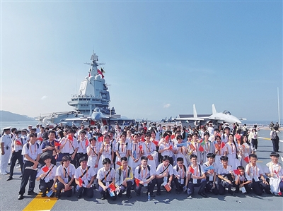 7月4日是山东舰编队访问香港的首个开放日,主要面向青少年学生开放参观,超一万人次登上人民海军山东舰、湛江舰、运城舰。舰上官兵精心设计了丰富的互动体验项目和歌曲快闪活动,现场气氛十分热烈。