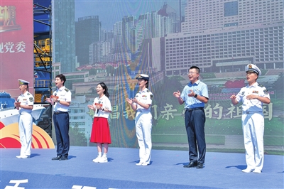 活动伊始,南昌舰官兵与山东港口青岛港职工联袂展示了打绳结、穿戴防护服等专业技能,精彩的演示赢得阵阵掌声。随后,全体人员共同观看了南昌舰宣传片,片中详细呈现了南昌舰作为人民海军主力舰艇,在远海训练、战备巡逻等重大任务中的先进事迹,使与会人员深刻认识到国防建设对于维护国家主权和领土完整的重要性。随后,“连钢创新团队”青年骨干宣讲了自主创新、科技攻关,把关键核心技术牢牢掌握在自己手中的奋斗故事;南昌舰官兵以“强军卫国”为主题,深情讲述了在深海远洋的感人事迹,让与会人员深切体会到军人保家卫国的坚定信念和无私奉献精神,进一步增强了现场人员的国防意识和爱国情怀。