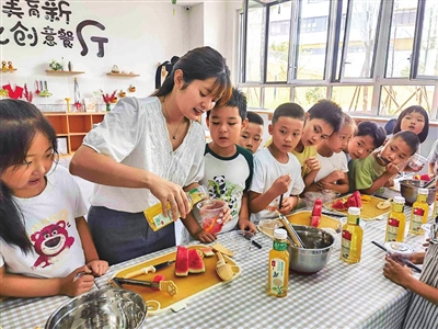 学校暑期托管服务注重对学生实践能力与创造能力的培养。在托管老师的带领下,同学们学习用新鲜时令水果调制健康可口的夏日特饮,体验从食材到美味的奇妙过程;丰富多样的手工工坊更是创意孵化场,鼓励同学们动手实践,将天马行空的想象转化为独一无二的艺术作品。“无论是沉浸在乐高积木的精密拼搭世界,锻炼逻辑思维与耐心,还是在静谧的阅读角里徜徉于经典书籍的海洋,汲取知识养分,育小新托管的每一刻体验都被赋予了成长的意义。我们致力于在安全、愉悦的环境中,满足孩子多元化发展需求,让暑期托管不仅仅是‘有人看管’,更是‘有质量地成长’。真正实现了‘托’得住、‘管’得好,让家长安心无忧,让孩子乐享一夏,收获知识、友谊与成长的喜悦。”青岛育新小学办公室副主任陈平霞说。