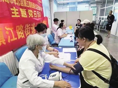 活动当天,在镇江路街道社区卫生服务中心,居民正在工作人员引导下有序参加体检,不仅包含彩超、心电图的家医特色服务包,更有含中医穴位埋线服务、中药熏蒸、三伏贴的中医特色服务包,适用面广,受到居民好评。现场还有青岛心血管病医院心脑血管专家义诊,对居民耐心细致地提出针对性建议,让困难群体“少跑腿、享服务”。