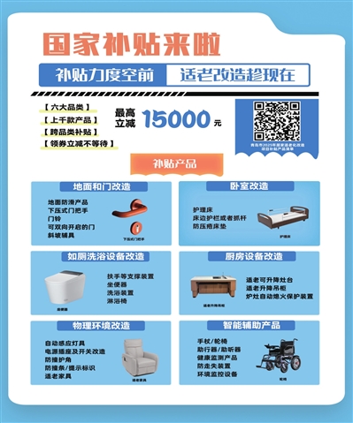 补贴产品品类齐全。此次项目售卖的适老化产品种类丰富,依据《青岛市2025年消费品以旧换新居家适老化改造项目实施细则》及相关政策,近千款产品纳入《居家适老化改造项目补贴产品清单》,涵盖地面和门改造、卧室改造、如厕洗浴设备改造、厨房设备改造、物理环境改造、智能辅助产品六大类25种,像适老家具、轮椅/助行器、助听器、健康监测产品、护理床、坐便器、淋浴椅等均在其中,满足老年人居家适老化改造的多元需求。