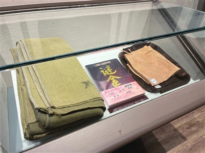 “爸爸牺牲后,他的战友想方设法将毛毯、党旗、提包等遗物送到我妈妈手中。”王令君表示,在物资匮乏的岁月,父亲将筹措来的经费与家族支援都用于革命,对自己却很“吝啬”——展柜里的提包和毛毯,无声诉说着主人的勤俭:提包边角处有明显磨损;毛毯部分边缘已磨成毛边,织线松散。王一民牺牲后,每当思念丈夫,妻子柳淑琴便会将旧毛毯披在肩上,常常一坐就是很久。