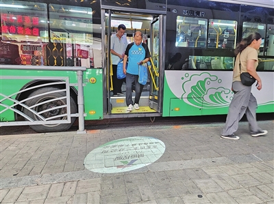 30路车途经台东商圈、威海路、海泊河等路段,夜间客流量大,尤其是老年乘客与携带行李的游客居多。传统公交车后门下车后的区域仅依靠车内顶灯照明,在光线昏暗或雨雪天气情况下,能见度较低。为破解这一难题,市北巴士二分公司在30路公交车后门位置安装车载投影灯设备。该设备采用低功耗LED光源,通过光学透镜将安全提示语、台阶轮廓线投射至后门区域,形成直径1米的清晰光斑。目前,这一试点工作已取得初步成效。不少乘坐过该车的乘客反馈,投影灯的设置让他们在夜间下车时更加安心。