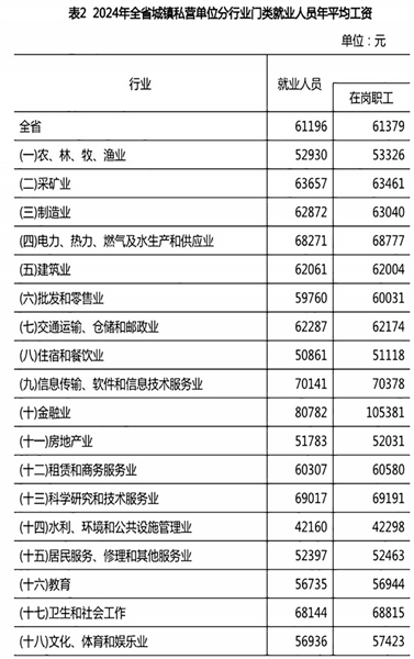 2024年,全省城镇私营单位就业人员年平均工资61196元,比上年增加150元,增长0.2%。其中在岗职工(包含劳务派遣)年平均工资61379元,比上年增加230元,增长0.4%。