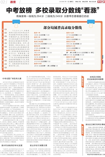 ~~~局属普高一段线为264分 二段线为249分 分数带志愿填报已启动