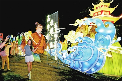 “江月何年初照人”这句诗出自那首作品?作者是谁?如果带着爱提问的孩子一起观灯,那么家长在观赏《诗韵长廊》灯组时一定要事先做好功课。在这里,长廊两侧的彩灯将传统元素与现代光雕技术完美融合,围栏上竖立着很多古诗词名句,毛笔造型的灯组立于其间,仿佛文人墨客正在挥毫泼墨。游客们穿梭于长廊之间,或驻足欣赏诗句,或拍照留念。