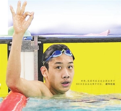 昨晚,在第十五届全国运动会男子800米自由泳决赛中,青岛18岁小将张展硕勇夺冠军,并打破全国青年纪录;此前,他先后获得男子400米自由泳和200米自由泳冠军,分别打破世界青年纪录和全国青年纪录