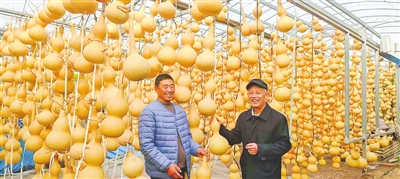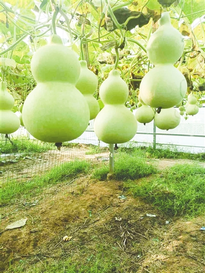 “之所以转行种葫芦,纯属偶然。”葛洪国说,8年前,他在外地参加博览会时,一个葫芦展位吸引了他的目光。摊位上,既有实用的葫芦瓢、葫芦灯,也有供观赏的葫芦摆件、葫芦画,价格从几十元到上千元不等。“我从小就喜欢侍弄庄稼,看到好品种就想尝试着种。当时就觉得,葫芦这东西既能当作物种,又能做工艺品,肯定有前景。”葛洪国说。