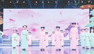 汇报演出以“蔚为大观”“执道明德”“气有浩然”三大篇章为脉络,生动呈现了一场中华优秀传统文化的视听盛宴。来自全市各个学段的学生代表以声情并茂的经典诵读、沉浸式情景演绎、民乐合奏、歌舞表演等多种形式,精彩演绎了《茉莉花》《诗经·关雎》的温婉雅致、《木兰辞》的飒爽担当、《大学》《道德经》的修身之道、《满江红》的浩然正气,让千年文化在当代舞台上焕发新生。活动特邀曾在《典籍里的中国》中饰演孔子的青岛籍表演艺术家王绘春倾情助演,带领小学生们以情景剧形式生动呈现《论语》经典,使先贤智慧变得可感可亲。