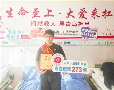 早报12月12日讯 近日,山东大学青岛校区在读博士生钱锋成功完成了造血干细胞捐献,成为青岛市第273例、即墨区第14例、山东大学青岛校区首例非血缘关系的造血干细胞捐献者。随着造血干细胞混悬液缓缓流入采集袋,一份跨越陌生人的生命希望正式启程。钱锋不仅生动诠释了“生命续航”的青年担当,也体现了高校学子在学术追求之外对社会责任的积极承担。