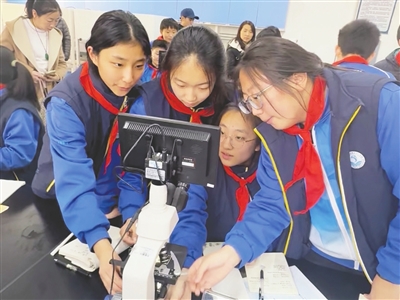 中科院海洋研究所的实验室里,青岛嘉峪关学校的学生们跟着科学家研究起海洋生物的生长环境与习性,在一次次实验中感受科学的神奇。“学校三年级学生每周会来到中科院海洋研究所上一堂科学课,专业的环境和导师力量让他们接触到‘真实的科学’。”青岛嘉峪关学校办公室主任赵逸楠介绍道。作为教育强区,市南区科学教育紧密融入区域发展进程,探索“全领域锻造、全方位赋能、全链条推进”的大科学教育战略,实施“学区+基地”研学实践项目,以六大学区为轴心,以中国科学院海洋研究所、中国水产科学研究院黄海水产研究所、中国地质调查局青岛海洋地质研究所、中国海洋大学、青岛大学等高校院所为依托,推进学区研学实践基地建设,目前仅与海洋所共同研发覆盖各年级的研学课程就有30余门。区域升级建设市南区少年科学院,扩大1个国家级、4个市级科学教育实验校的辐射作用,构建全域无边界“大科创”教育育人全新体系。(青岛早报/观海新闻记者 王彤 摄影报道)