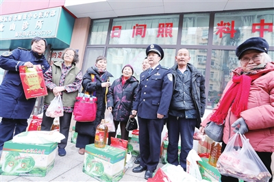 当天下午,青岛红十字熊猫基金、青岛广电潮汐公益、中国狮子联会宁德服务队、中国狮子联会希望服务队、青岛市平度会馆、隧道巴士第四分公司等志愿者团队开展入户走访,将温暖送到群众家中。志愿者与群众促膝长谈,详细了解他们的生活状况和实际需求,为他们送上米、面、油、肉肠、蔬菜等生活物资,更送上了新春的美好祝福。