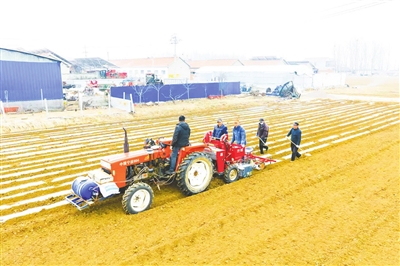 早报3月2日讯 时下正值春耕生产关键时期,连日来,胶州市抢抓季节时令,抓好马铃薯春耕播种工作,助推马铃薯产业提质增效。望眼田间地头一片繁忙景象,大型播种机穿梭不息,村民在农技人员的指导下翻耕整地、切块播种、覆膜盖土,一股规模化种植的热潮正在沃野上涌动,全市10万亩马铃薯播种正有序推进,为新一年的丰收打下坚实基础。